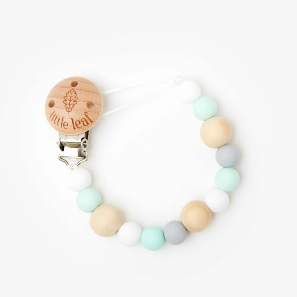 Zawieszka dla smoczka Little Leaf to niezbędnik każdej przezornej mamy. Ta przepiękna zawieszka w kolorach miętowym, szarym i kolorze drewna sprawi, że smoczek będzie zawsze tam gdzie powinien. Blisko maluszka. Czy zawieszka do smoczka to dobry prezent z okazji baby shower czy pierwszej wizyty? Tak, zawieszka do smoczka idealnie sprawdzi się jako prezent z okazji baby shower, pierwszej wizyty lub innych okazji. Będzie także doskonałym dopełnieniem wyprawki dla noworodka tworzonej przez przyszłe mamy. Specyfikacja: można stosować dla dzieci w wieku 0+, długość całkowita: 25 cm (+/- 1cm), wiek: 0+, producent: Little Leaf, kolor: mint & gray / miętowy & szary, produkt wykonany z drewna klonowego oraz bezpiecznego silikonu- wolnego od BPA, ftalanów, PCV, lateksu i ołowiu. Zasady konserwacji: elementy drewniane przecieraj suchą lub lekko zwilżoną szmatką (po umyciu kolor drewna może ulec zmianie). Elementy silikonowe przecieraj zwilżoną szmatką z mydłem. Sznurek myj w ciepłej wodzie z mydłem. Nie używaj środków czyszczących. Produkt nie nadaje się do mycia w zmywarce czy sterylizatorze. Elementy zawieszki z naturalnego drewna mogą różnić się od siebie strukturą i barwą. Ostrzeżenie: Przed każdorazowym użyciem dokładnie sprawdź produkt. Wyrzuć po pojawieniu się pierwszych oznak uszkodzenia lub zużycia. Nigdy nie przedłużaj wyrobu do mocowania smoczka! Nigdy nie przypinaj do sznurków, wstążek, koronek i luźnych części ubranka. Dziecko może się udusić. Użycie jedynie w obecności i pod opieką osoby dorosłej.