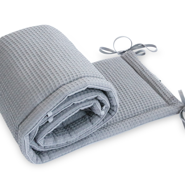 Ochraniacz do łóżeczka - Dlaczego warto kupić ? super prezentuje się jako dekoracja do łóżeczka, 100% bawełna, grubo tkana, o strukturze podobnej do wafelka, sprężyste, antyalergiczne wypełnienie jest bezpieczne dla dziecka, nie dopuszcza do uderzenia główki dziecka o szczebelki w łóżku bezpieczny już od 1 dnia życia, dzięki mocowaniu za pomocą troczków pasuje do łóżeczek o wymiarach: 60x120cm oraz 70x140cm. Wymiary: 30x180cm (+/-3cm) Materiały: 100% bawełna Wypełnienie: antyalergiczne, 100% poliester Uwagi: ochraniacz można w całości prać w pralce oraz prasować