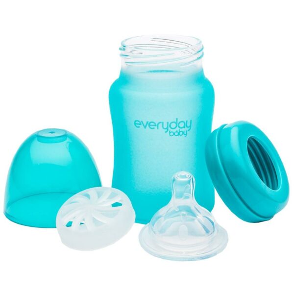 Szklana butelka reagująca na temperaturę 150 ml Turkusowa / Everyday Baby