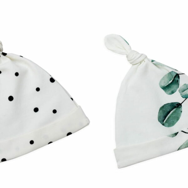 Czapeczka Krasnal 2szt Czarne Kropki - Eukaliptus 0-2/ Sleepee