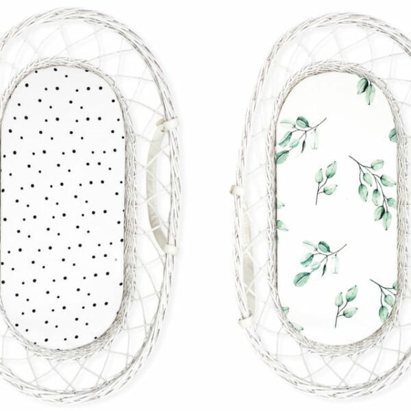 Prześcieradło do gondoli 2szt We Care Czarne Kropki - Eukaliptus / Sleepee