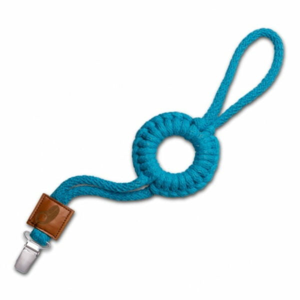 Sznurkowa zawieszka do smoczka pleciona z wysokiej jakości sznurka bawełnianego z certyfikatem OEKO-TEX. Do wyplecenia zawieszki wykorzystano kółko z drewna bukowego, które alternatywnie służyć może dziecku do łagodzenia bólu rozpulchnionych podczas ząbkowania dziąseł. Zawieszki robione są ręcznie w Polsce dlatego ich długość może się nieznacznie różnić. Wymiary Długość: ok. 30 cm Średnica kółeczka: ok. 6 cm Klips: ok. 3 cm Pielęgnacja: Zalecamy wymianę zawieszki co 4-5 miesięcy ze względów higienicznych. Zawieszkę można prać ręcznie w temp. 30 stopni. Suszyć naturalnie, nie suszyć w suszarce. Zawieszka spełnia funkcję trzymania smoczka. Nie używaj tego przedmiotu, gdy dziecko śpi.Zawieszka musi być używana pod nadzorem osoby dorosłej.