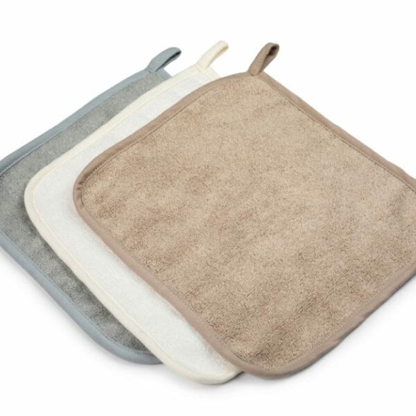 Wielozadaniowy zestaw ręczniczków Memi sprawdzi się w wielu sytuacjach Idealny jako ręcznik do twarzy malucha Zabezpiecza ramię rodzica, gdy dziecko ulewa przy odbijaniu Ręcznik do wycierania ząbkującego dziecka, ponieważ frotte jest bardzo chłonnym materiałem Przydatny podczas mycia Must have w wyprawce Wykończony lamówką Produkt polski Zestaw 3 ręczniczków składa się z następujących kolorów (cream, light grey, sand) Wymiary: około 25x28 Skład: 100% CV bambus w okrywie pętelkowej. Gramatura: 500 GSM. Frotte posiada certyfikat OEKO-TEX Standard 100 w klasie 1.