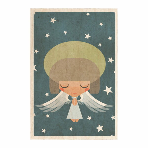 Drewniana kartka Anioł na granatowym tle / Miwoodo