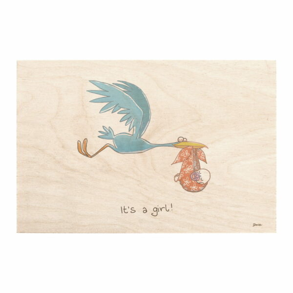 Drewniana kartka z okazji narodzin dziecka It's a girl Bocian / Miwoodo