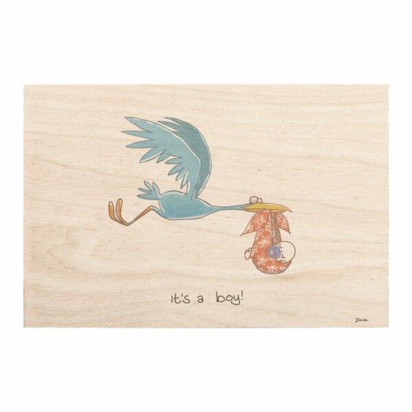 Drewniana kartka z okazji narodzin dziecka It's a boy Bocian / Miwoodo