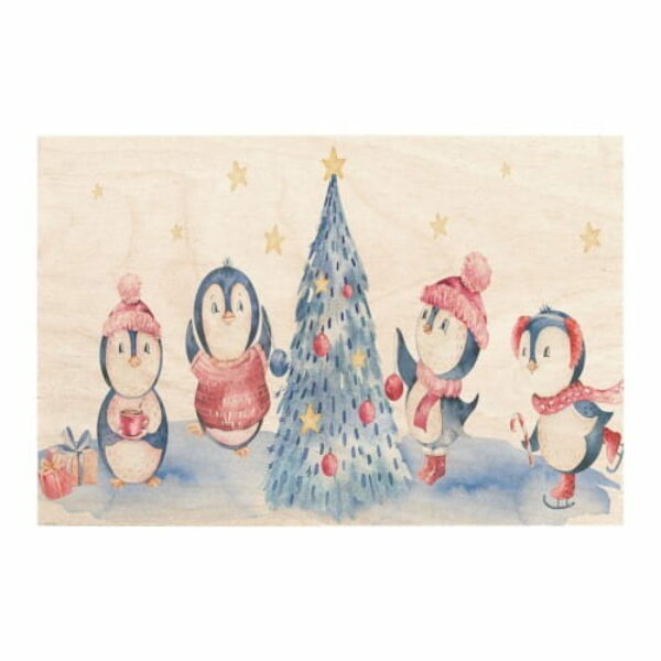 Drewniana kartka świąteczna Boże Narodzenie Pingwinki / Miwoodo