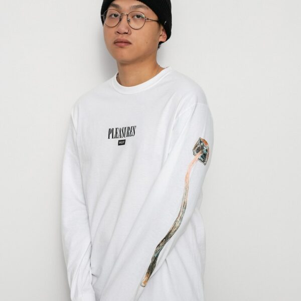 Kolaboracja HUF X Pleasures • Materiał: 100% bawełna • Okrągły dekolt • Dekolt oraz rękawy zakończone wygodnymi ściągaczami • Długie rękawy • Nadruk na przodzie i rękawach