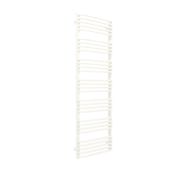 ALEX 1580/500 RAL 9016 SX; przyłącze SX; Klasyczny grzejnik łazienkowy zbudowany z kolektorów o przekroju prostokąta połączonych za pomocą wygiętych rurek. Rurki typu "C" oraz zachowanie przestrzeni między sekcjami ułatwiają zawieszenie ręczników, dzięki czemu Alex dobrze sprawadza się zarówno w roli ogrzewacza pomieszczeń jak i suszarki.
