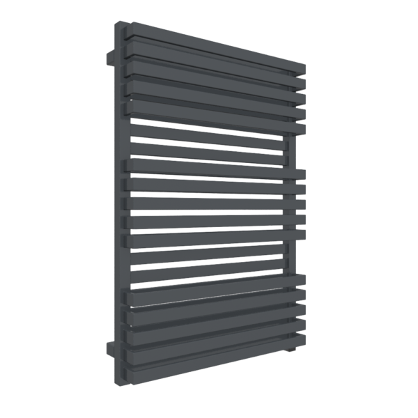 QUADRUS BOLD ONE 870/600 Metallic Black E8; przyłącze E8; Grzejnik łazienkowy o dużej mocy uzyskanej dzięki podwójnemu rzędowi rur. Płaskie profile osadzone na kwadratowych kolektorach tworzą mocną geometryczną bryłę. Zachowanie przerw między sekcjami we frontowym rzędzie pozwala na łatwe wykorzystanie grzejnika jako suszarki do ręczników. Ukryta w kolektorze grzałka One nie zmienia percepcji formy. Jednocześnie pozwala cieszyć się wszystkimi zaletami posiadania grzałki: możliwością ogrzewania i suszenia ubrań poza sezonem grzewczym. Timer daje możliwość automatycznego wyłączenia urządzenia po dwóch godzinach. Grzałka One jest bardzo ekonomiczna, pobór prądu w stanie czuwania wynosi 0,5W.