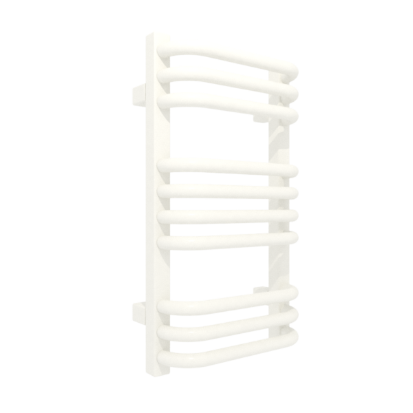 ALEX 540/300 RAL 9016 LX; przyłącze LX; Klasyczny grzejnik łazienkowy zbudowany z kolektorów o przekroju prostokąta połączonych za pomocą wygiętych rurek. Rurki typu "C" oraz zachowanie przestrzeni między sekcjami ułatwiają zawieszenie ręczników, dzięki czemu Alex dobrze sprawadza się zarówno w roli ogrzewacza pomieszczeń jak i suszarki.