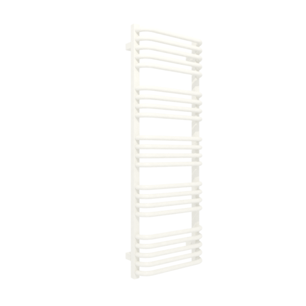 ALEX 1140/400 RAL 9016 SX; przyłącze SX; Klasyczny grzejnik łazienkowy zbudowany z kolektorów o przekroju prostokąta połączonych za pomocą wygiętych rurek. Rurki typu "C" oraz zachowanie przestrzeni między sekcjami ułatwiają zawieszenie ręczników, dzięki czemu Alex dobrze sprawadza się zarówno w roli ogrzewacza pomieszczeń jak i suszarki.