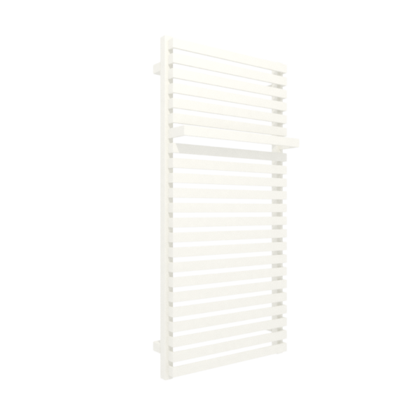 CITY 1050/500 RAL 9016 SX; przyłącze SX; Geometryczna bryła zbudowana z płaskich rurek łączących kwadratowe kolektory. W górnej sekcji jedna z rurek została wysunięta tworząc funkcjonalny wieszak na ręczniki. Model dobrze sprawdzi się w nowoczesnych minimalistycznych przestrzeniach łazienek i kuchni. Dostępny w wersjach: wodnej, wodno-elektrycznej i elektrycznej. Dostępna także wersja z wbudowaną grzałką One (City One).