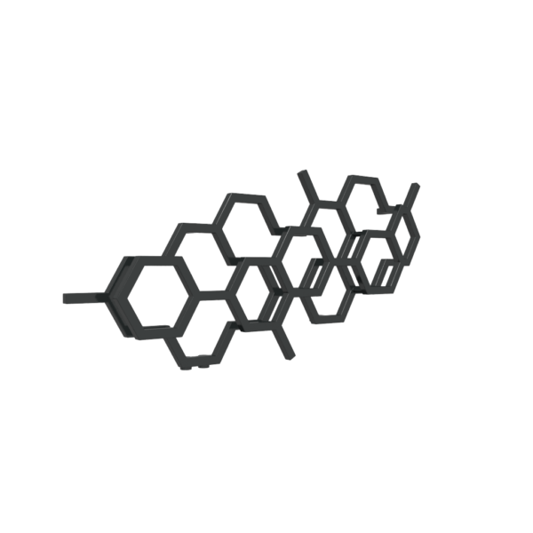 HEX 502/1126 RAL 9005 mat YL; przyłącze YL; Laureat prestiżowej nagrody iF Design Award 2017 oraz wyróżnienia Must Have 2017 przyznawanego przez Łódź Design Festival. Dwuwarstwowa bryła skonstruowana z heksagonalnych modułów stanowi wyjątkową, a zarazem funkcjonalną ozdobę nowoczesnych łazienek. Model dostępny w wersji wodnej, w orientacji pionowej oraz poziomej.