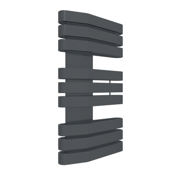 IRON S 730/400 Metallic Grey GD; przyłącze GD; Cechą charakterystyczną tego modelu jest możliwość wyboru różnych kolorów dla grzejnika i maskownicy, co pozwala tworzyć unikalne kombinacje i personalizować produkt. Iron S wyróżnia się również dużym polem powierzchni grzejnej, co w konsekwencji przekłada się na jego wysoką moc. Płaskie rurki zostały owinięte wokół niesymetrycznie położonego kolektora, co sprawia, że mocna, zdecydowana bryła tego modelu staje się lżejsza w odbiorze. Przesunięcie kolektora do boku ułatwia także przewieszenie ręcznika. Dostępne wersje: wodna, wodno-elektryczna, elektryczna.