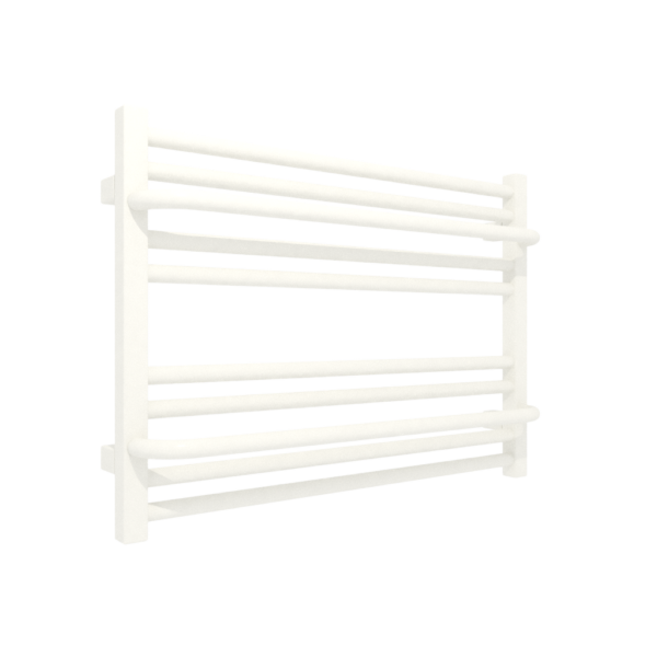 LIMA 500/700 RAL 9016 SX; przyłącze SX; Bryła zbudowana z okrągłych rurek, spośród których część została wysunięta tworząc wieszaki zapewniające swobodny dostęp do suszonych rzeczy. Grzejnik oferowany w szerokiej gamie wysokości i szerokości oraz rodzajów podłączeń, co pozwala z łatwością dopasować go do każdej wielkości wnętrza oraz typu instalacji. W ofercie wersja wodna, wodno-elektryczna oraz elektryczna.