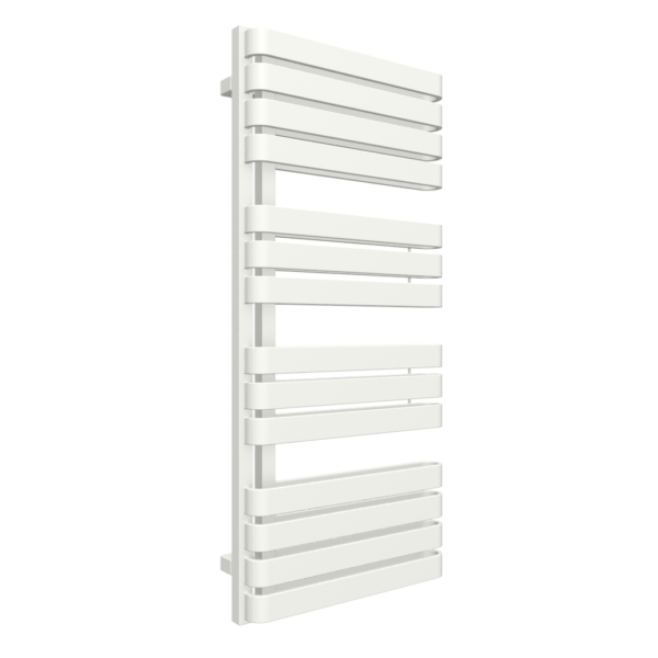 WARP S 1110/500 Soft 9016 GD; przyłącze GD; Dzięki nietypowemu, jednostronnemu umiejscowieniu kolektorów, prosty łazienkowy grzejnik nabiera zupełnie nowego wyrazu. Pomimo asymetrycznej konstrukcji bryła pozostaje wizualnie stabilna i wyważona. Szerokie przestrzenie pomiędzy sekcjami rur oraz wysoka moc grzewcza umożliwiają swobodne korzystanie z grzejnika jako suszarki. Dostępne wersje: wodna, wodno-elektryczna i elektryczna.