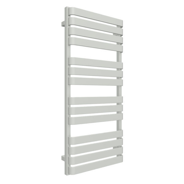 WARP T 1110/500 RAL 9018 SX; przyłącze SX; Płaskie profile nadają bryle nowoczesny wygląd a, a ich delikatne wygięcie ułatwia zawieszanie ręczników do wysuszenia. Grzejnik stanowi doskonałą alternatywę dla typowych form drabinkowych o okrągłym przekroju profilu. Dostępny w wersji wodnej, wodno-elektrycznej oraz elektrycznej. W ofercie także tożsamy model z wbudowaną grzałką One (Warp T One).