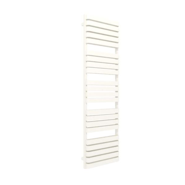 WARP T BOLD 1695/500 RAL 9016 SX; przyłącze SX; Forma grzejnika nawiązuje do klasycznych grzejników drabinkowych, jednak dzięki podwójnym rzędom szerokich, płaskich profili model ten wytycza nowe standardy w dziedzinie wydajności i designu. Zachowanie przestrzeni pomiędzy sekcjami ułatwia wieszanie ręczników, dzięki czemu urządzenie może funkcjonować jako wygodna i wydajna suszarka. Grzejnik dostępny w wersji wodnej, wodno-elektrycznej oraz elektrycznej. Dostępna także wersja z wbudowaną grzałką One (Warp T Bold One).