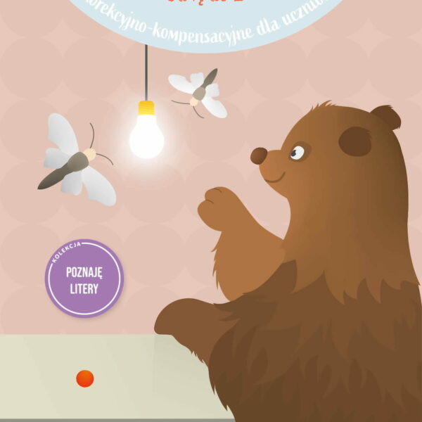 Niedźwiedzie i ćmy w szafie... to zestaw ćwiczeń dla uczniów klas I–III uczęszczających na zajęcia korekcyjno-kompensacyjne. Publikacja przyda się również starszym dzieciom korzystającym z terapii pedagogicznej, zajęć wyrównawczych czy korekcyjno-kompensacyjnych, a także do pracy w domu pod okiem rodzica.Ćwiczenia zaznajamiają ucznia z literami ze znakami diakrytycznymi, dwuznakami i trójznakiem, czyli elementami alfabetu języka polskiego sprawiającymi największą trudność w nauce czytania i pisania.Dzieci, pracując z książką, wykonują rozmaite rodzaje zadań, np.:słuchają rymowanki, szukają rymu i dopowiadają brakujący wyrazodpowiadają na pytania dotyczące treści wierszykawyodrębniają daną głoskę z wyrazów i reagują określonym ruchem na jej obecnośćanalizują budowę litery i werbalizują spostrzeżenia dotyczące jej części i wzajemnego ich położeniaczytają sylaby i wyrazy, stosując technikę „ślizgania się”piszą literęporządkują historyjkę obrazkową, opowiadają jej treśćodszyfrowują wyrazy, przenosząc litery do diagramów według podanego koduwycinają, porządkują wycięte elementy według podanej zasadygrają w domino, memory.Publikacja składa się z 20 modułów. Każdy poświęcony jest innej literze, innemu dwuznakowi lub trójznakowi. Z modułów można korzystać w dowolnej kolejności.