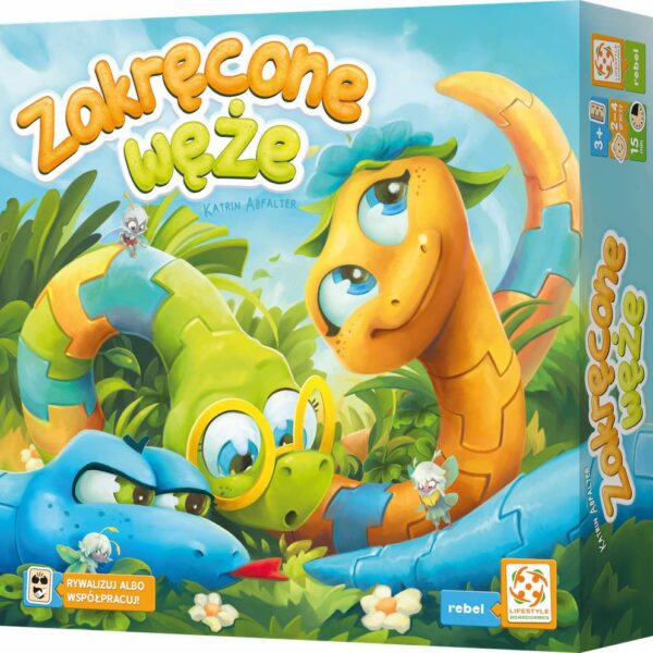 Sss…trasznie zakręcona gra!Zakręcone węże postanowiły sprawdzić, który z nich potrafi najbardziej zbliżyć czubek ogona do języka, zwijając swoje długie ciało. Sprawa nie jest prosta, bo gdy tak wiją się na wszystkie strony, trudno oszacować, gdzie wyląduje koniec!Wybierz węża i nadaj mu niepowtarzalny wygląd dzięki naklejkom. Rzucaj kostką i wydłużaj jego tułów, niech się zgina i zwija! Na koniec gry zmierz odległość między ogonem węża a jego językiem. Jeśli to Twój wąż jest najbliżej celu, wygrywasz!Dlaczego pokochasz tę grę?Zakręcone węże to prosta zabawa, w której dokładamy kolejne elementy do naszych węży, by osiągnąć określony cel. Aby tego dokonać, ćwiczymy analizę wzrokową i planowanie przestrzenne.Instrukcja opisuje aż 4 warianty rozgrywki: klasyczną rywalizację, 2 kooperacyjne przygody oraz zasady zaawansowane przeznaczone dla dzieci od 5. roku życia, dzięki którym gra pozostanie wyzwaniem na dłużej.Dołączone do zestawu naklejki pozwalają na ozdobienie naszych węży i sprawienie, że Wasza kopia gry będzie jedyna w swoim rodzaju!Zawartość:drewniana kośćwstążka do mierzenia4 zestawy części w 4 różnych kolorach8 klipsów (w tym 4 dodatkowe)4 tułowie smoków3 arkusze z naklejkami do ozdabiania węży8 okrągłych żetonówinstrukcja Liczba graczy: 2 - 4 osoby Wiek: od 3 lat