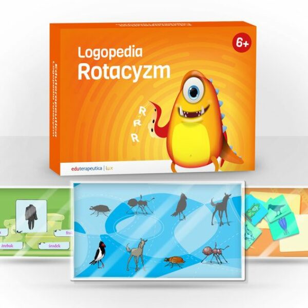 Eduterapeutica Lux Logopedia Rotacyzm to zbiór ponad 100 ćwiczeń interaktywnych wraz z kartami pracy na zajęcia z dziećmi, które mają problem z prawidłową wymową fonemu /r/. Zawiera ćwiczenia z głoską r w różnych konfiguracjach, m.in.: tr, dr, pr, br, mr, wr, fr, śr, źr, chr, kr, gr.Co zawiera program Eduterapeutica Lux Logopedia Rotacyzm?100 ćwiczeń interaktywnych, karty pracy,ćwiczenia z głoską "r" w różnych konfiguracjach m.in. "tr", "dr", "pr", "br", "mr", "wr", "fr", "źr", "śr", "chr", "kr", "gr".Seria Eduterapeutica Lux Logopedia jest rekomendowana przez Polski Związek Logopedów.Grupa wiekowa (sugerowany wiek): 6-10 lat.Pakiet Eduterapeutica Lux LOGOPEDIA można sfinansować z projektu "Aktywna Tablica".Eduterapeutica lux Logopedia RotacyzmNumer 1 w terapii – Eduterapeutica lux:Możliwość prowadzenia terapii na różnych urządzeniach: komputerze, laptopie, tabletach oraz ekranach dotykowych.Nowość! Możliwość pobrania ćwiczeń interaktywnych i przesłanie ich uczniowi za pomocą wiadomości e-mail.Licencja otwarta pozwala na zainstalowanie programu na dowolnej liczbie urządzeń – dostęp do programu dla całej kadry pedagogicznej i wszystkich uczniów.Możliwość pracy z uczniem w klasie i gabinecie, a także na odległość.Bezpłatne wsparcie merytoryczne, techniczne.Dostęp do bezpłatnych i certyfikowanych webinarów merytorycznych.Licencja otwarta na 5 lat.Wersja online (program z kodem) z dostępem na 5 lat.Szkolenie online z obsługi programu oraz wsparcie merytoryczne i serwisowe - gratis.O Eduterapeutica LuxSprawdzone pomoce i narzędzia to terapii – wejdź na wyższy poziom terapii i edukacji dzięki Eduteraputica Lux!Nowa edycja pakietów multimedialnych Eduterapeutica Lux powstała z myślą o Waszych potrzebach edukacyjnych i terapeutycznych. Każdy materiał dydaktyczny jest przemyślany i dokładnie przeanalizowany przez Was – specjalistów. Bo kto, jak nie Wy najlepiej zrozumie potrzeby dzieci i młodzieży ze SPE? Przyjazne i ciekawe wizualnie ćwiczenia interaktywne zachęcają do udziału w terapii, a dodatkowo budują w nich optymizm, wytrwałość i wiarę we własne możliwości.Eduterapeutica Lux to kompleksowe i różnorodne pomoce dostępne w formie:multimediów,materiałów tradycyjnych,nowoczesnych narzędzi, takich jak drukarki i długopisy 3D.Pomoce przygotowane są do prowadzenia zajęć na każdym etapie rozwoju – dla uczniów w wieku od 6 do 15 lat. Seria Eduterapeutica Lux wspiera terapie wszystkich uczniów o specjalnych potrzebach edukacyjnych. Dlaczego warto pracować z Eduterapeutica Lux?NowoczesnośćTerapie możesz prowadzić na różnych urządzeniach oraz pobrać ćwiczenia interaktywne i przesłać je uczniowi za pomocą e-mail. Ponadto możesz prowadzić terapię skądkolwiek zechcesz.KompleksowośćDostajesz dostęp do różnorodnych ciekawych kart pracy, ćwiczeń multimedialnych czy np. do nowoczesnych technologii (jak długopisy 3D).Wygoda użytkowaniaLicencja otwarta pozwala na zainstalowanie programu na dowolnej liczbie urządzeń. Program jest intuicyjny i prosty w obsłudze. Bezpłatne wsparcie techniczne przez cały okres użytkowania.