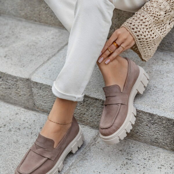 półbuty mokasyny na grubej podeszwie - skóra naturalna - model 285 - kolor cappuccino