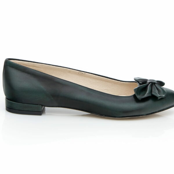 przecierane balerinki z kokardką - skóra naturalna - model 048 - kolor zielona przecierka - outlet