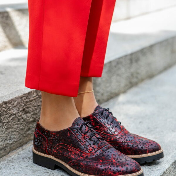 sznurowane półbuty oksfordki - skóra naturalna - model 258 - kolor czarno-czerwony marmur