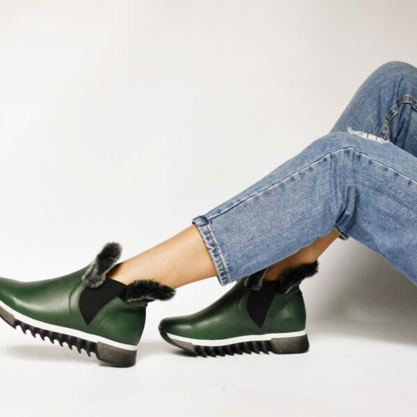 ocieplane botki - skóra naturalna - model 485 - kolor zielony outlet