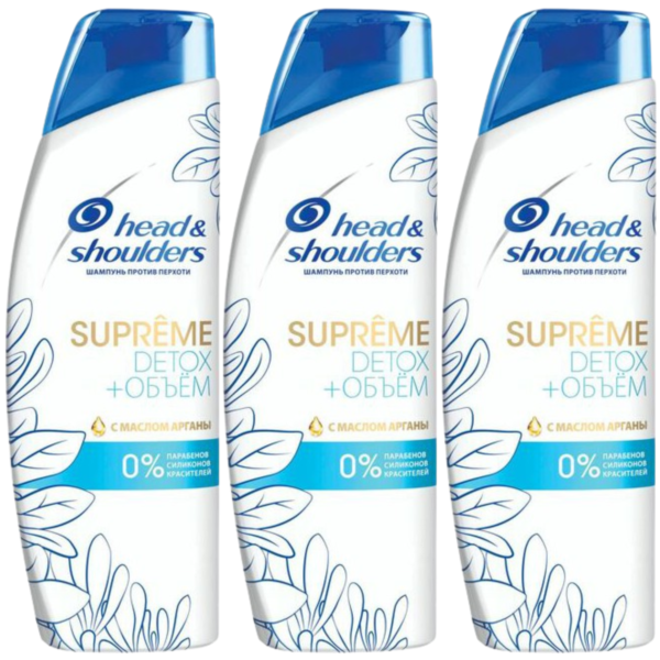 Head&Shoulders Supreme Detox + Volume Oczyszczający Szampon do Włosów 3 x 300ML Linia Head & Shoulders Supreme została stworzona z myślą o wyjątkowych potrzebach kobiet. Wypróbuj tę wyjątkową gamę szamponów i odżywek przeciwłupieżowych, zapewniających intensywne nawilżenie i długotrwałą ochronę przed łupieżem. Formuła ze składnikiem przeciwłupieżowym łagodnym nawet dla długich włosówZawiera substancje nawilżające i olejek arganowy, który jest luksusowym, naturalnym składnikiem dobrze znanym w branży kosmetycznejWłosy głęboko odżywione od cebulek aż po końce i bardziej miękkie już od pierwszego myciaWersja: Suprême Detox + Volume (Oczyszczający)Sposób użycia: Nanieś odpowiednią ilość szamponu na mokre włosy. Spień i dokładnie spłucz.