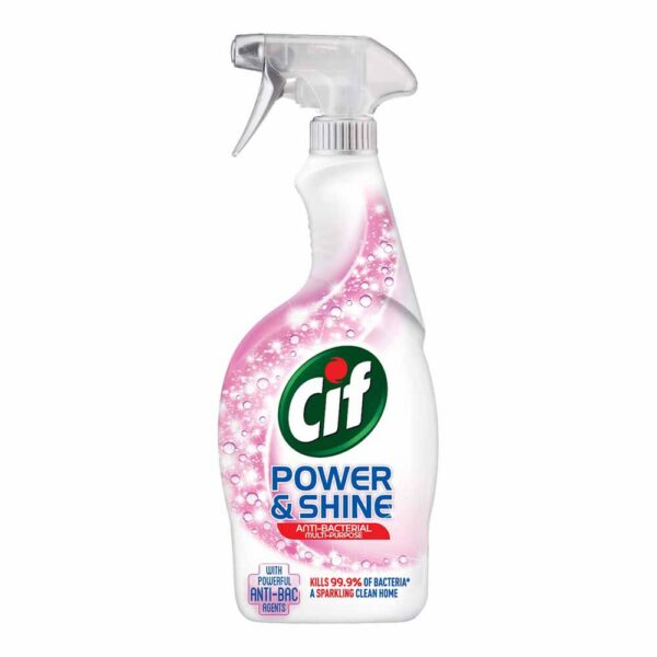 Cif Power & Shine Multi-Purpose Uniwersalny Spray do Czyszczenia 700ML Produkt bakteriobójczy, grzybobójczy oraz biobójczy wobec wirusa grupy H1N1 przeznaczony do dezynfekcji powierzchni / urządzeń mających jak i niemających bezpośredniego kontaktu z żywnością. Preparat nie do stosowania w obszarze klinicznym.Zabija 99.9% bakterii i wirusy grypy*.Usuwa tłuste zabrudzenia kuchenne oraz zabrudzenia w łazience. Dogłębnaczystość. Świeży zapach. Eliminuje bakterie takie jak Salmonella, MRSA(Gronkowiec złocisty odporny na antybiotyki), E. Coli & Listeria orazwirusy grypy w tym H1N1.Odpowiedni do stosowania na powierzchniach mających kontakt z żywnością.Sposób użycia: By osiągnąć efekt wybielania i połysk bez smug, spryskaj powierzchnię, pozostaw na kilka sekund i wytrzyj mokrą ściereczką.UWAGA: Produkt występuje w kilku szatach graficznych!