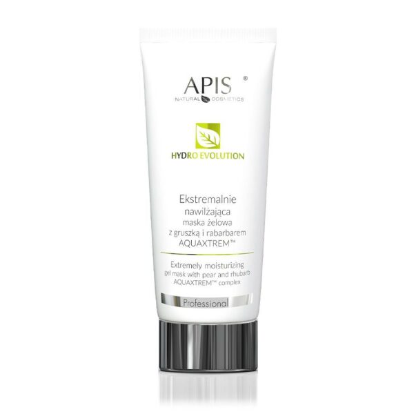 Apis HYdro Evolution Maska żelowa 200ml:Ekstremalnie nawilżająca maska żelowa z gruszką i rabarbaremAquaxtream tm to maska o lekkiej żelowej w konsystencji bogatej w głęboko nawilżające składniki: ekstrakt z gruszki, kompleks Aquaxtream tm z korzeni rabarbaru. Wzbogacony kwasem hialuronowym, ekstraktem z siemienia lnianego, ekstraktem z aloesu chroni przed czynnikami zewnętrznymi i zapobiega odwodnieniu. Skóra odzyskuje nawilżenie, promienny młody wygląd.Składniki aktywne:ekstrakt z gruszki - źródło witaminy A, C i B, wygładza, nawilża i rewitalizuje, chroni przed szkodliwym działaniem UVkompleks Aqaxtrem tm – głęboko i długotrwale nawilża, odbudowuje warstwę lipidową naskórkaekstrakt z aloesu – nawilża i uelastycznia, poprawia ukrwienie oraz ma działanie bakteriobójczeekstrakt z lnu - zmiękcza i łagodzikwas hialuronowy - nawilżaPolecana do cery odwodnionej, zniszczonej bądź przesuszonej. Sposób użycia: Na oczyszczoną skórę twarzy, szyi i dekoltu nałóż maskę omijając okolice oczu i ust. Poczekaj 15-20 minut i zmyj letnią wodą. Najlepiej stosuj ją 2-3 razy w tygodniu.