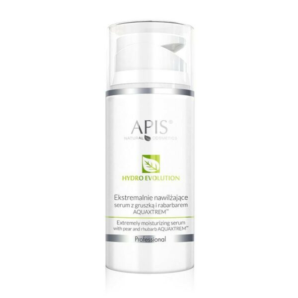 Apis Hydro Evolution Nawilżające serum 100ml:Ekstremalnie nawilżające serum z gruszką i rabarbarem Aquaxtrem tm to bogate serum o ekstremalnym działaniu nawilżającym z ekstraktem z gruszki, kompleksem Aquaxtream tm z korzeni rabarbaru. Wzbogacony kwasem hialuronowym, ceramidami, ekstraktem z siemienia lnianego skutecznie naprawia strukturę skóry, ogranicza utratę wody i pomaga osiągnąć głębokie i długotrwałe nawilżenie.Składniki aktywne:ekstrakt z gruszki - źródło witaminy A, C i B, wygładza, nawilża i rewitalizuje, chroni przed szkodliwym działaniem UVkompleks Aqaxtrem tm – głęboko i długotrwale nawilża, odbudowuje warstwę lipidową naskórkaekstrakt z aloesu – nawilża i uelastycznia, poprawia ukrwienie oraz ma działanie bakteriobójczeekstrakt z lnu - zmiękcza i łagodzikwas hialuronowy - nawilżaPolecane do cery odwodnionej, zniszczonej bądź przesuszonej. Sposób użycia: Serum możesz stosować 1-2 razy dziennie. Pamiętaj, że Twoja skóra musi zostać dobrze przygotowana. Oczyść ją dokładnie, zaaplikuj tonik i dopiero później zastosuj serum. Poczekaj chwilę aż się wchłonie.