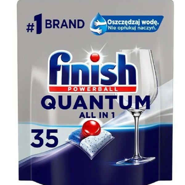 Finish Quantum All in 1 Fresh Kapsułki do Zmywarki 35 Sztuk Wysokiej jakości kapsułki do zmywarki, które zapewnią doskonałą czystość i olśniewający połysk. Trzykomorowe kapsułki skutecznie usuwają wszystkie rodzaje pozostałości jedzenia - bez wstępnego spłukiwania. Poradzą sobie z każdym wyzwaniem w kuchni! Chronią przed korozją szkła, jednocześnie zapobiegając osadzaniu się kamienia w zmywarce.Bez wstępnego namaczania Usuwają uporczywe zabrudzeniaChronią szkło i srebroNadają olśniewający połyskDziałają w niskich temperaturachWysoce skuteczna formułaAż 35 kapsułek w opakowaniu!Multifunkcyjna 3-komorowa kapsułka:Płynny Powerball zapewnia olśniewający blask2 komory z proszkiem z funkcją namaczania i czyszczenia, usuwają zalegające resztki jedzeniaFolia biodegradowalna zapewnia szybkie i skuteczne rozpuszczanie się kapsułki.Finish to marka numer 1*, rekomendowana przez producentów zmywarek takich jak: Beko, Bosch, Gaggenau, Gorejne, Grundig, Neff, Siemens, Smeg. Sposób użycia:Trzymaj kapsułkę tylko suchymi dłońmi.Nie rozrywaj kapsułki.Nie zdejmuj folii z kapsułki, ani nie przecinaj.Rozpuszcza się całkowicie podczas mycia. Do każdego zmywania umieść jedną kapsułkę w SUCHYM dozowniku.Nie umieszczaj w koszyku na sztućce.W celu osiągnięcia najlepszych rezultatów korzystaj z programów eco lub auto.Aby uzyskać niezrównaną czystość naczyń, wypróbuj:Płyn nabłyszczający – dla lepszych rezultatów schnięcia i zapobiegania zaciekom Płyn do czyszczenia zmywarki – dla zachowania czystości i ładnego zapachu zmywarki Sól do zmywarki – dla ochrony przed odkładaniem się kamienia Tabletki do czyszczenia zmywarki – dla zachowania higienicznej czystości zmywarki Odświeżacz do zmywarki z technologią Anti Odor – dla zapewnienia odświeżającego zapachu za każdym razem, gdy otwierasz zmywarkę