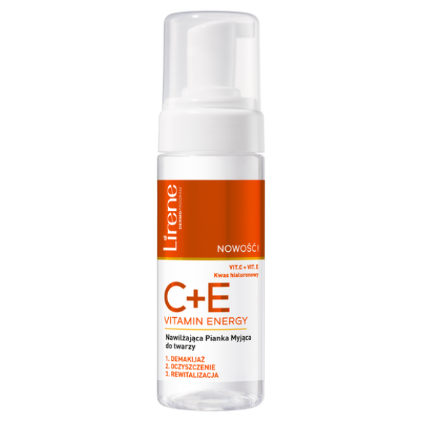 Lirene C+E Vitamin Energy Nawilżająca Pianka Myjąca do Twarzy 150ML Aksamitnie kremowa pianka oczyszczająca w niezwykle przyjemny i delikatny sposób usuwa pozostałości makijażu, nadmiar sebum oraz inne zanieczyszczenia. Witaminowa formuła nawilża, odżywia i dodaje energii pozbawionej blasku cerze.Składniki aktywne zawarte w piance do mycia twarzy Lirene C+E Vitamin Energy: WITAMINY C I E - wzajemnie się stabilizująi wzmacniają swoje działanie, tworząc silnyukład antyoksydacyjny dbający o prawidłowaochronę i odbudowę skóryWITAMINA C - użyta w jednejz najstabilniejszych i najskuteczniejszychform rozpuszczalnych w wodzie; pobudza i stymuluje skórę do regeneracji,przywracając jej witalnośćWITAMINA E - ma zdolność do wbudowywania się w głębokie warstwyna skórka, regeneruje i nawilżaKWAS HIALURONOWY - chroni skórę przed utratą wilgoci, poprawia poziom nawilżenia oraz pozostawia skórę miękką w dotykuSposób użyciaPiankę rozprowadź na skórze twarzy i szyi kolistymi ruchami.Następnie spłucz obficie woda.