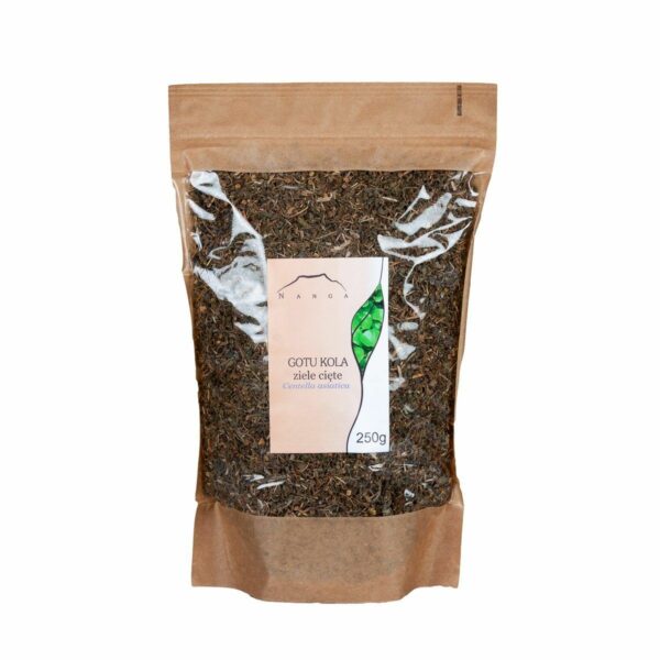Gotu kola ziele cięty 250g Nanga Opis produktu w najbliższym czasie będzie uzupełniony. Jeśli potrzebujecie Państwo otrzymać więcej informacji na temat tego zioła lub suplementu proszę pisać na adres mailowy bok@zielarski.info.