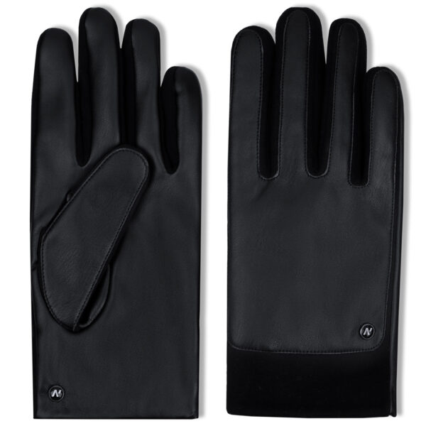 Nowoczesne ocieplane dotykowe rękawiczki męskie ze skóry ekologicznej czarne elastyczne wygodne spandex na prezent napo gloves napoSMART eco