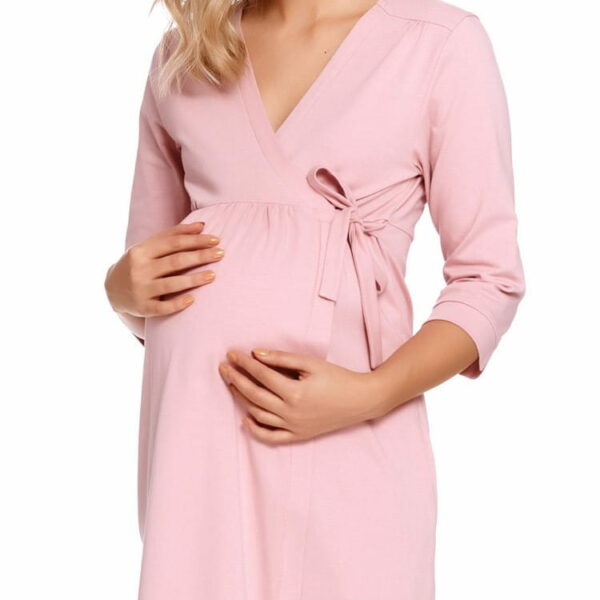 Wygodny i elastyczny szlafrok ciążowy w kolorze Papaya od Doctor Nap pięknie będzie wyglądał na przyszłej i obecnej mamie Szlafrok ciążowy z kopertowym dekoltem sprawdzi się idealnie zarówno w okresie ciąży, jak i po porodzie. Produkt ma optymalną długość, dzięki czemu nawet panie z bardzo dużym ciążowym brzuszkiem mogą czuć się w nim w pełni komfortowo. Wyrób posiada wygodne, średniej długości rękawki oraz dekolt w serek, który sprawia, że sylwetka nabiera ładnych proporcji. Jego atutem jest także wiązana pod biustem kokarda, która dodaje uroku. Szlafrok ciążowy Doctor Nap w stonowanym, różowym kolorze jest uniwersalnym uzupełnieniem każdej koszuli ciążowej do karmienia. Ma również funkcjonalny fason, który dobrze prezentuje się zarówno na sylwetce z ciążowym brzuszkiem, jak i bez niego. Wyrób jest uszyty starannie i z dbałością o detale. Wykorzystana do produkcji certyfikowana bawełna pozwala skórze oddychać i zapobiega jej przegrzewaniu. Szlafrok ciążowy w kolorze Papaya dzięki zawartości elastanu jest wygodny i elastyczny oraz zapewnia swobodę ruchów. Materiał szlafroczka jest bardzo miękki. Zalety szlafroka ciążowego Doctor Nap: Szlafrok posiada boczne kieszenie oraz fantazyjne wiązanie pod biustem Praktyczny w okresie ciąży i kilka tygodniu po powrocie do domu Materiał jest niezwykle miękki i posiada właściwości higroskopijne, jest także hipoalergiczny Posiada certyfikat OEKO-TEX Standard 100 Idealny na prezent dla przyszłej lub obecnej mamy kobiecy, różowy kolor Papaya Specyfikacja i zasady pielęgnacji szlafroka ciążowego Doctor Nap: Długość rękawa: 3/4 Materiał: 95% Bawełna 5%Elastan Pielęgnacja: Przed zakupem szlafroka ciążowego koniecznie sprawdź tabelę rozmiarów: Jeżeli chcesz aby nasz produkt zachował długo swoją jakość i kolor nie zapomnij, aby stosować się do przepisu prania zamieszczonego na naszej metce gdzie masz dokładne informacje odnośnie temperatury prania, wirowania, prasowania itp. Pamiętaj mimo wszystko, aby każdy nasz produkt:• prać w pralce w programie delikatnym, max 800 obrotów.• nie suszyć w suszarce bębnowej• po praniu naciągnąć i nadać mu właściwy kształt przed rozwieszeniem• nie chlorować, nie stosować wybielaczy w tym wybielaczy optycznych, które często są dodawane do proszków i płynów do prania, niszczą one naturalny kolor i nadruk na dzianinach (nawet delikatne proszki dla dzieci potrafią zawierać optyczne wybielacze tj. jak aktywny tlen uwalniany z nadwęglanu dodawanego do środka piorącego)• nie czyścić chemicznie• można prasować dostosowując temperaturę żelazka do składu dzianiny.