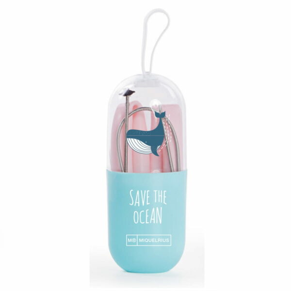 Słomka silikonowa wielokrotnego użytku różowa Save the Ocean / Miquelrius