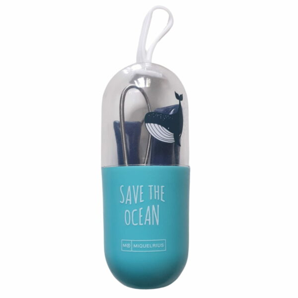 Słomka silikonowa wielokrotnego użytku granatowa Save the Ocean / Miquelrius