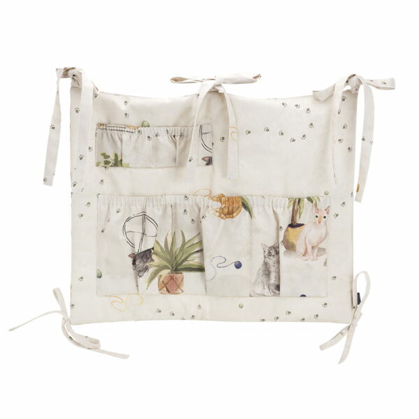 Praktyczny organizer na łóżeczko Meow Stories od Makaszki z pewnością ozdobi każdy dziecięcy pokoik piękne, nasycone wzory na organizerze od Makaszki dodadzą uroku i staną się ozdobą dziecięcego łóżeczka uniwersalny organizer na łóżeczko zaprowadzi porządek w drobnych, a przydatnych dla maluszka rzeczach: chusteczki, butelki, pieluszki będą tuż pod ręką, gdy tylko będzie ich potrzebować trzy kokardy u góry i dwie na dole ustabilizują organizer na łóżeczku. Bawełniany organizer posiada trzy duże kieszenie na dole i dwie małe na górze. Kieszonki mają wszyte gumeczki, zabezpieczając produkty przed przypadkowym wypadnięciem. Szukasz praktycznego prezentu? Polecamy organizer Meow Stories na łóżeczko od Makaszki. Wzór organizera: Meow Stories Wymiary: 55x45 cm (+/- 2 cm) Skład: 100% bawełna najwyższej jakości posiadająca Certyfikat OEKO-TEX 100 klasa I. Nadruk na bawełnie nie zmienia kolorów nawet po wielokrotnym praniu. Wypełnienie: antyalergiczna, oddychająca włóknina silikonowa, która nie zmienia swojej struktury podczas prania i użytkowania. Wypełnienie wewnątrz jest wszyte do tkanin zewnętrznych, dzięki temu nie przemieszcza się podczas użytkowania i w praniu. Sposób prania: prać w temp. 30°C, maksymalne obroty 800/min, nie prać ręcznie, nie suszyć w suszarce bębnowej.