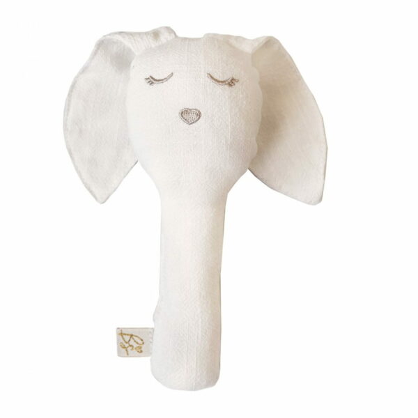 Lniana przytulanka grzechotka od Babysteps Mięciutka grzechotka jest stworzona z myślą o najmłodszych. Dziecko nie ma trudności ze złapaniem jej w swoje rączki. Poręczna tuba grzechotki oraz długie uszy aż się proszą o chwytanie. Maskotka jest mięciutka, a przy potrząsaniu nią wydaje grzechoczące dźwięki. Długie uszy szeleszczą i zachęcają do gryzienia. Nasza grzechotka Linen od Babysteps w postaci uroczego króliczka będzie również pierwszą przytulanką maluszka. Dzięki małym rozmiarom bez problemu schowasz ją do torebki np. podczas spaceru. Nadruk w postaci zamkniętych oczu i noska- serduszka dodaje uroku maskotce. Lniana grzechotka króliczek od Babysteps została uszyta z bezpiecznych materiałów. Można jej używać już od pierwszych dni życia maluszka. Wysokość: 19 cm + uszy Kolor: White