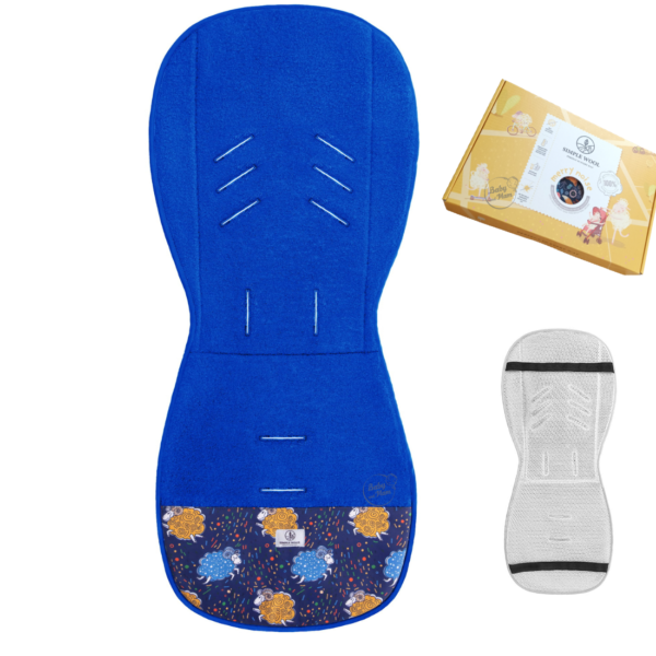 Wkładka antypotowa z wełny merino do wózka Niebieskie owce / Simple Wool