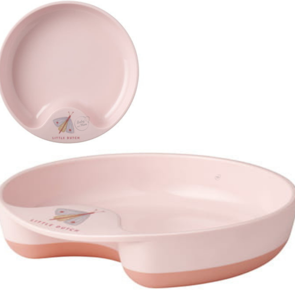 Talerzyk Mio od Little Dutch z kolekcji Flowers & Butterflies ucieszy Twojego malucha podczas samodzielnego jedzenia. Lekki, poręczny talerzyk od Little Dutch będzie idealny do nauki samodzielnego jedzenia, jest wytrzymały na uderzenia i upadki, całkowicie bezpieczny dla dzieci. Co wyróżnia talerzyk Mio Little Dutch od innych talerzyków dostępnych na rynku dla dzieci? wyjątkowo lekki, a wykonany z mocnego i wytrzymałego plastiku wolnego od BPA, wysokie krawędzie talerzyka ułatwiają jedzenie dla malucha bez rozsypywania i rozrzucania, posiada antypoślizgową podstawę, dzięki temu jest stabilny i umożliwia samodzielne jedzenie, posiada zakrzywiony z boku kształt dla ułatwienia nabierania pokarmu przez malucha, dziecko uczy się samodzielnie jeść, talerzyk można myć w zmywarce, poddawać zamrożeniu i używać w kuchence mikrofalowej. Wiek: rekomendowany od 6-go miesiąca życia. Wymiary: 17 cm. Kolor: różowy z motywem kwiatów i motyli. Materiał: Polipropylen (PP), Elastomer termoplastyczny (TPE). Zgodność z normą: EN 14350, bezpieczny w kontakcie z żywnością.