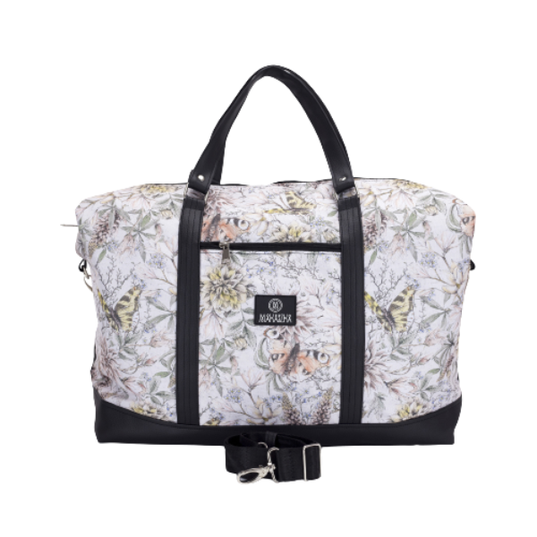 Torba weekendowa Makaszka we wzorze Dream Garden zastąpi walizkę na kólkach i umili każdą podróż. Wyjeżdżasz na kilka dni i nie potrzebujesz nudnej walizki? Duża torba od Makaszka idealnie sprawdzi się podczas każdej podróży, została uszyta z tkaniny odpornej na działanie wody, ścieranie i promieniowanie UV. Elegancka, stylowa, w piękne wzory torba to idealny towarzysz podróży. Środek torby wykonany został z nieprzemakalnej podszewki, która jest odporna na zabrudzenia. Fantastyczna torba na weekendowy wyjazd, jako bagaż kabinowy, torba do szpitala, czy torba na basen i siłownię. Poznaj funkcjonalne cechy Torby weekendowej Makaszka : zamykana na zamek, posiada wewnątrz obszerną kieszeń zamykaną na suwaczek oraz komplet mniejszych kieszonek, po zewnętrznej stronie torby znajduje się podręczna kieszonka zapinana na suwak, torba posiada na zewnątrz szeroką szlufkę z kieszonką umożliwiająca zamontowanie torby na walizce, po bokach torby znajdują się karabińczyki umożliwiające zmniejszenie jej rozmiaru, posiada regulowany pasek na ramię o długości 80-100cm, ma wygodne rączki z ekoskóry o długości 50cm, torba ma wzmocnione i usztywnione dno z ekoskóry oraz metalowe nóżki do dodatkowej ochrony. Torbę można skompletować z innymi produktami Makaszka, a jej idealnym dopełnieniem będzie wodoodporna kosmetyczka. Doskonale sprawdzi się jako stylowy prezent dla każdej kobiety. Wszystkie Torby weekendowe Makaszka są szyte ręcznie w Polsce z zachowaniem najwyższej staranności i dbałością o szczegóły. Wymiary: 55×36 cm, dno: 50×25 cm.