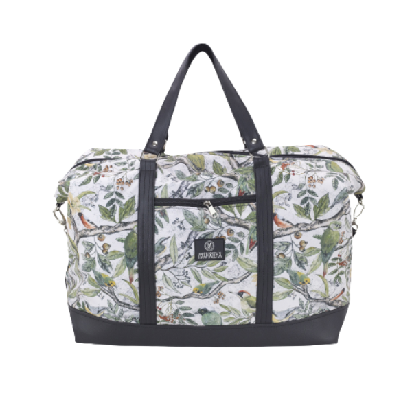 Torba weekendowa Makaszka we wzorze Ornithology zastąpi walizkę na kólkach i umili każdą podróż. Wyjeżdżasz na kilka dni i nie potrzebujesz nudnej walizki? Duża torba od Makaszka idealnie sprawdzi się podczas każdej podróży, została uszyta z tkaniny odpornej na działanie wody, ścieranie i promieniowanie UV. Elegancka, stylowa, w piękne wzory torba to idealny towarzysz podróży. Środek torby wykonany został z nieprzemakalnej podszewki, która jest odporna na zabrudzenia. Fantastyczna torba na weekendowy wyjazd, jako bagaż kabinowy, torba do szpitala, czy torba na basen i siłownię. Poznaj funkcjonalne cechy Torby weekendowej Makaszka : zamykana na zamek, posiada wewnątrz obszerną kieszeń zamykaną na suwaczek oraz komplet mniejszych kieszonek, po zewnętrznej stronie torby znajduje się podręczna kieszonka zapinana na suwak, torba posiada na zewnątrz szeroką szlufkę z kieszonką umożliwiająca zamontowanie torby na walizce, po bokach torby znajdują się karabińczyki umożliwiające zmniejszenie jej rozmiaru, posiada regulowany pasek na ramię o długości 80-100cm, ma wygodne rączki z ekoskóry o długości 50cm, torba ma wzmocnione i usztywnione dno z ekoskóry oraz metalowe nóżki do dodatkowej ochrony. Torbę można skompletować z innymi produktami Makaszka, a jej idealnym dopełnieniem będzie wodoodporna kosmetyczka. Doskonale sprawdzi się jako stylowy prezent dla każdej kobiety. Wszystkie Torby weekendowe Makaszka są szyte ręcznie w Polsce z zachowaniem najwyższej staranności i dbałością o szczegóły. Wymiary: 55×36 cm, dno: 50×25 cm.