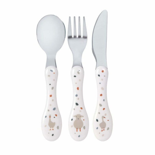 Komplet 3 sztućców ze stali nierdzewnej Tiny Farmer Owieczka Gąska / Lassig