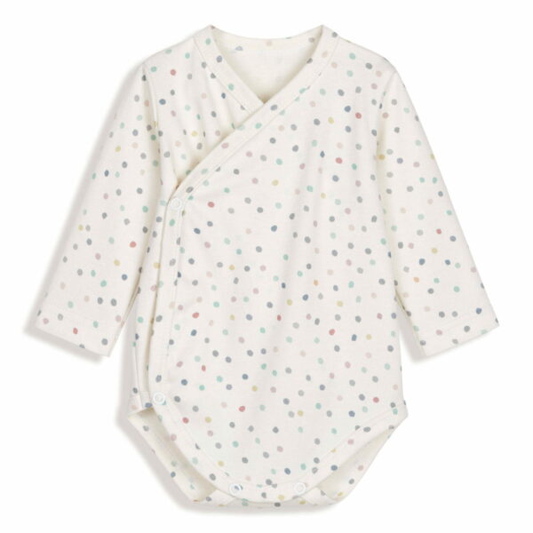 Body kopertowe Dots od polskiej marki Pink no More to świetnej jakości pierwsze ubranko dla maluszka. Wyjątkowo wygodne body kopertowe dla dziecka to idealny wybór na piersze ubranka, są wygodne dla dziecka, ale również łatwe w ubieraniu przez rodzica. Delikatna skóra maluszka pokocha te body. Uroczy delikatny wzorek w kropeczki zachwyca. Wykonane z wysokiej jakości polskiej dzianiny z certyfikatem Oeko-tex Standard 100 oraz Certfikatem Bezpieczny dla dziecka wydanym przez Instytut Włókiennictwa. Body kopertowe Pink no More dostępne jest w trzech rozmiarach: 56, 62 i 68 cm. Skład: 100% BawełnaZalecenia odnośnie prania: Nie prać ręcznie. Prać w pralce w 40 stopniach. Nie wybielać. Suszyć w suszarce. Prasować w temp. max 150 stopni Celsjusza. Nie czyścić chemicznie.