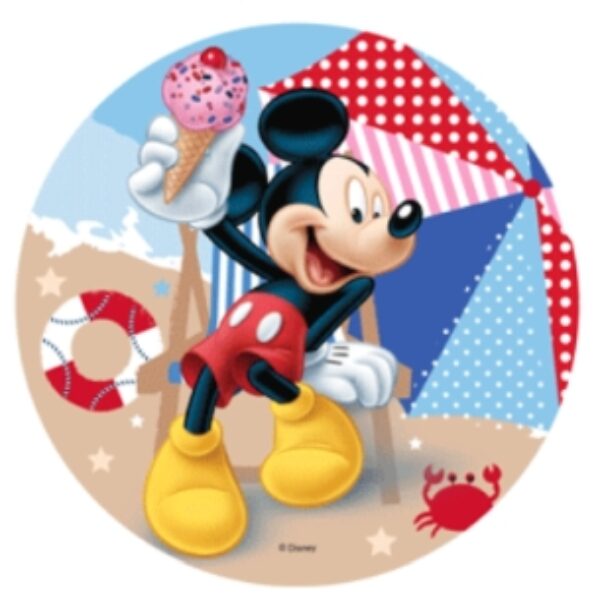 Jadalny okrągły opłatek na tort z motywem kreskówki Myszki Mickey i Minnie. Idealna dekoracja z opłatka, który po nałożeniu na biały krem staje się delikatnie miękki i idealny do krojenia.Ze względu na różne wzory, opłatki są wydawane losowo.